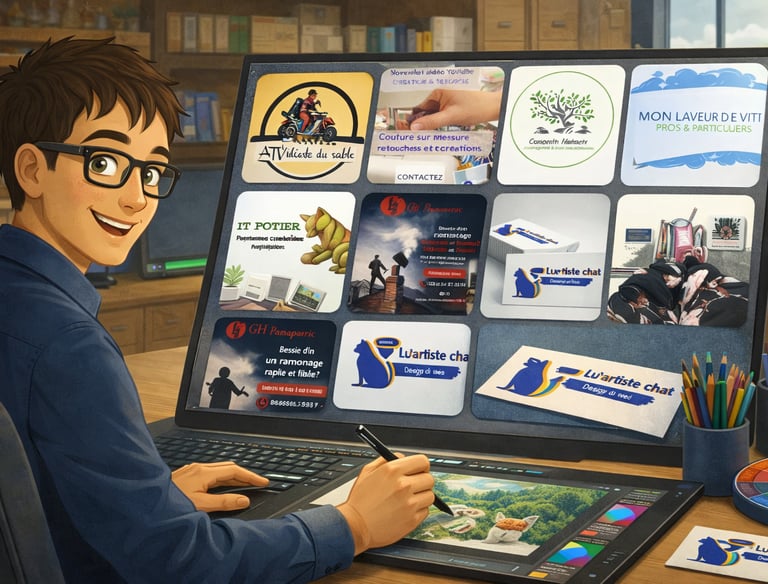 Nous créons des visuels modernes, esthétiques et professionnels pour valoriser votre image. Logo, identité visuelle, supports marketing ou créations personnalisées, nous vous accompagnons avec des solutions adaptées à vos besoins, que vous soyez professionnel ou particulier.